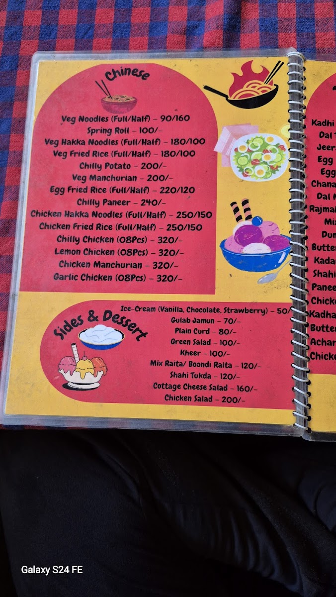 The food offerings include a range of Chinese dishes featuring vegetarian and non-vegetarian noodles, fried rice, and classic preparations such as Manchurian and chilly variants. These dishes provide options for light to moderate meals, suitable for lunch or dinner.